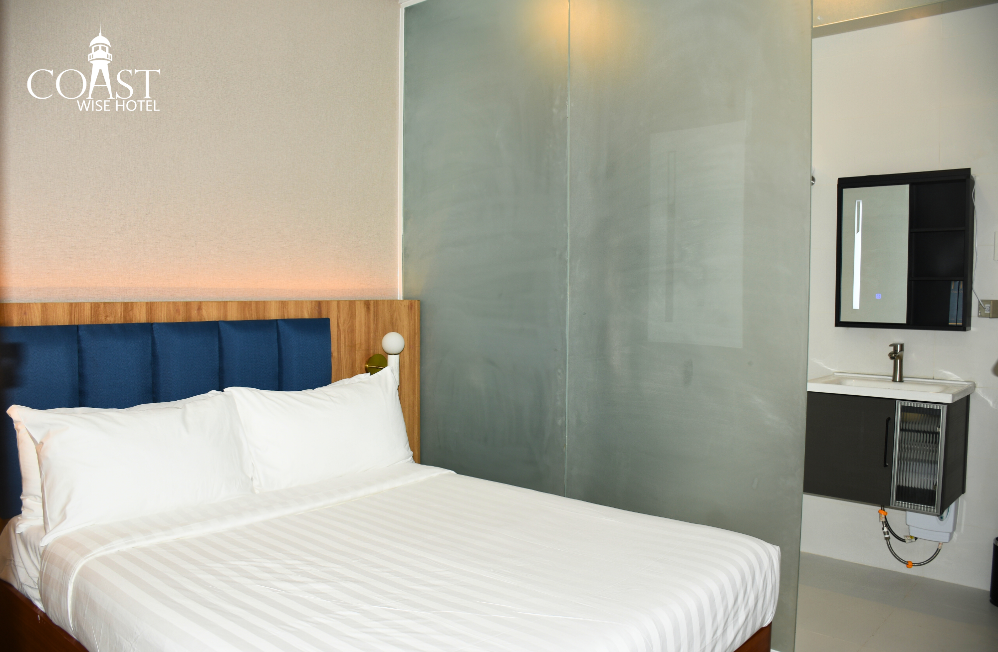This room offers a blend of modern amenities and seaside serenity, fitted with 1 queen bed equipped with smart TV, Wi-Fi, coffee/tea facility, air condition, a modern bedside table for easy charging of gadgets, mini-fridge, hair dryer, and personal bath care.